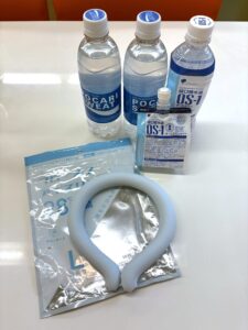 室温が高くなるような場合は、特に水分補給・体を冷やすなどの工夫をしながらの勤務をお願いします。