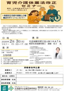 北海道中小企業団体中央会様主催の「育児介護休業法改正セミナー」において、